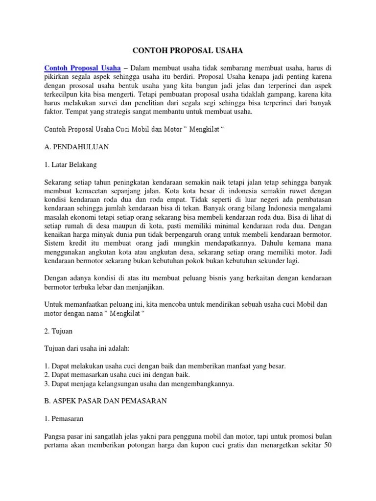 Membantu calon pembeli mendapatkan produk atau jasa yang tepat. Cek juga contoh bisnis plan yang bagus di ulasan berikut! Nah, anda pun dapat merintis usaha kerajinan rotan seperti contoh tersebut. Berikut tiga contoh proposal usaha dan bisnis untuk mendatangkan investor. Unsolicited tidak menargetkan pihak tertentu atau target pemasarannya lebih bersifat umum . Proposal usaha ini hampir menyerupai brosur pemasaran. Untuk membantu pemasaran produk tanpa perlu repot mendatangi klien satu per satu; Kamu bisa memberikan gambaran umum mengenai rencana usaha, profil dari konsumen, potensi serta segmentasi pasar, metode pemasaran, analisa pesaing dan peluang, . Produk makanan yang dijual · 5. Minimal anda memiliki katalog berupa website dan melakukan pemasaran sendiri . Agar terkesan lebih enak dalam hal cita rasa, maka ditambahkan jelly dan susu kental manis. Contoh proposal usaha bisnis plan lengkap dan singkat untuk makanan ringan tradisional, ternak, bidang jasa yang diajukan ke investor di . Profil badan usaha · 2.