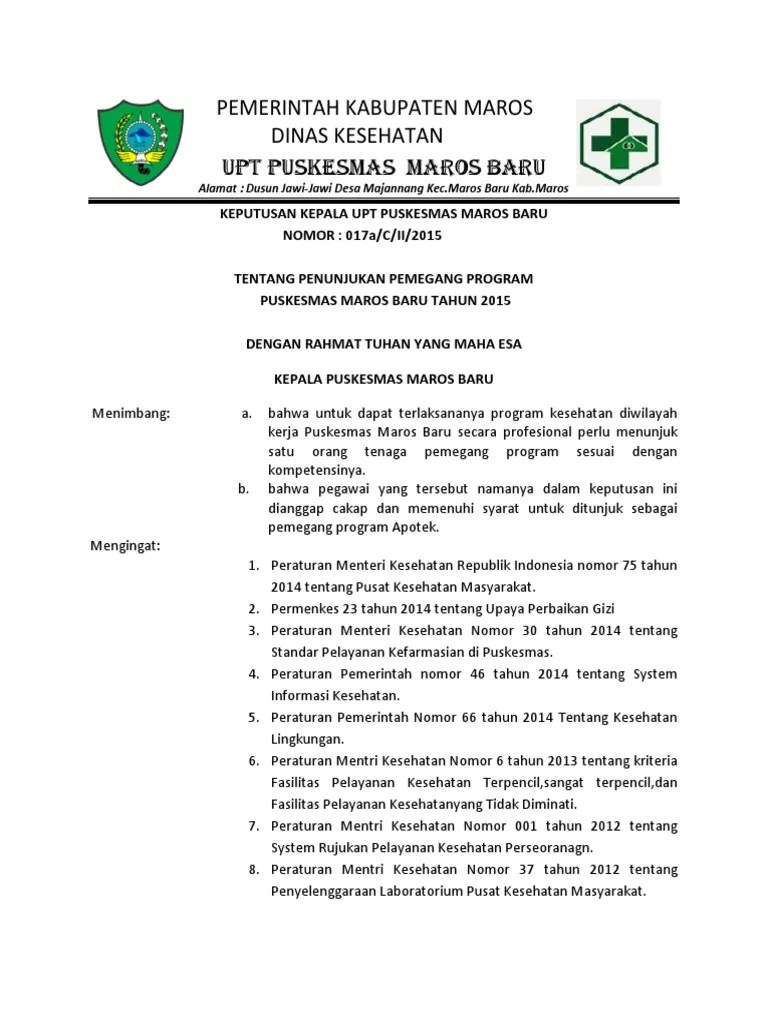 Contoh Sk Kesehatan Jiwa : Surat Keputusan Pemimpin Upt Blud Puskesmas Sedau Rienz Agung Academia Edu - Keputusan menteri kesehatan republik indonesia,.. Pusat unggulan kesehatan jiwa di indonesia Perihal penetapan petugas penanggung jawab program kesehatan jiwa tangga . Sk penunjukan asn sebagai pa, kpa, ppk dan bendahara. Mempersiapkan layanan bantuan kesehatan jiwa dan psikososial bagi seluruh warga satuan pendidikan dengan tata cara : Kedokteran jiwa, paru, orthopedi, urologi, bedah syaraf, bedah plastik dan.